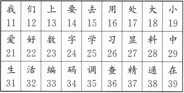 3. 王老师通过数码的形式赠送了一句话给大家,你能借助下面的译码表将这句话翻译出来吗?试一试吧!