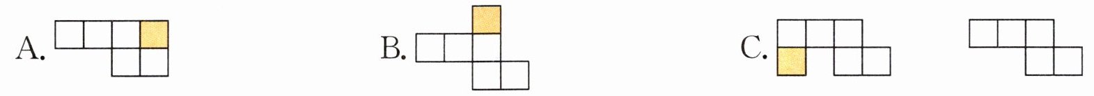 3. 在下面右边的图形上再画一个正方形,使它能折成一个正方体。下面三种画法(图中涂色部分)中,正确的是( )。