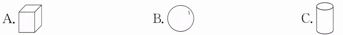 2. 从不同位置观察下面的立体图形,看到的形状都一样的是( )。