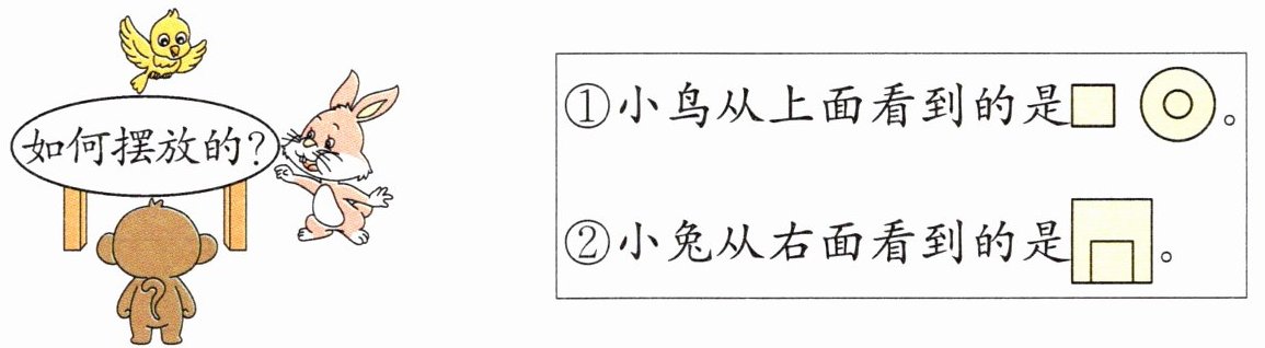 你知道这两个立体图形是如何摆放的吗?下面哪一个是小猴看到的?
