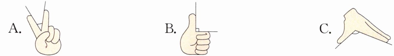 3. 我们的手能比划出各种角,下面图( )中比划的角是直角,图( )中比划的角最大。