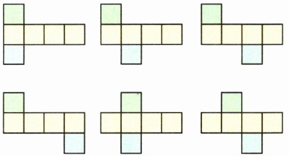 4. 正方体展开后一共有11种不同的图形,看看还缺哪几种,大家一起找一找。