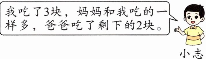 4. 妈妈买了一个西瓜,平均分成8块。爸爸、妈妈和小志各吃了这个西瓜的几分之几?