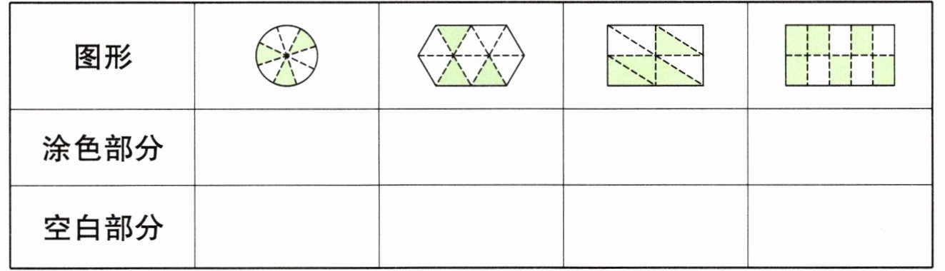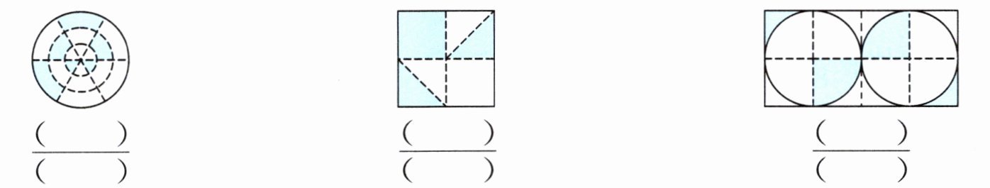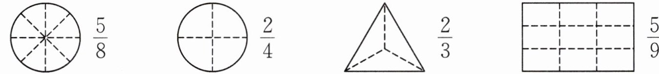 3. 用分数表示下面各图的涂色部分和空白部分。