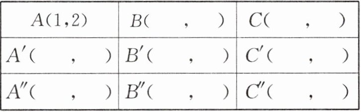 2. 分别画出三角形ABC向上平移3格和向右平移6格后所得到的三角形A'B'C'和三角形A''B''C'',并在下表中用数对表示出平移前后顶点的位置。