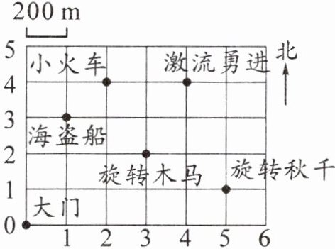 海盗船的位置可以用(1,3)表示,它在大门以东200 m,再往北600 m处。