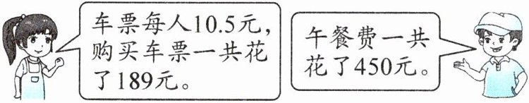 4.午餐费平均每人多少钱?(答案不唯一) 189÷10.5=18(人) 450÷18=25(元) 答:午餐费平均每人25元。