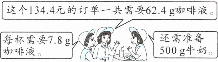 (4)①这个订单一共有多少杯咖啡? ②134.4 62.4 7.8