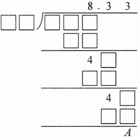 (1)(浙江温州)下图是一道小数除法题的计算过程,已知商是8.$\dot{3}$,商的循环节是( ),竖式中的A= ( )。