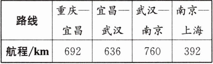 |路线|重庆—宜昌|宜昌—武汉|武汉—南京|南京—上海|