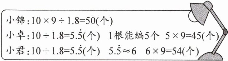 小卓:10÷1.8= 5.5(个) 1根能编5个 5×9= 45(个)
