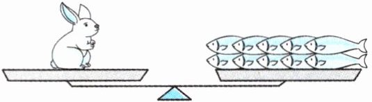 ②如果左盘中放入2只兔子,右盘中要放入( )条鱼或( )只兔子,天平才能平衡。
