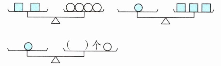 ②如果左盘中拿出3个□,右盘中要拿出( )个○,天平才能保持平衡。