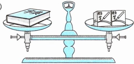 ②如果左盘中再放入1本字典,右盘中再放入2盒粉笔,天平保持( )。