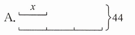 (1)(浙江温州)下面选项中不能用方程“x+3x= 44”来表示的是( )。