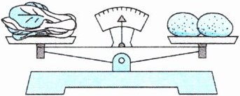 1. 下图的天平处于平衡状态,若在右边再放4个土豆,要使天平保持平衡,左边应放(A)。