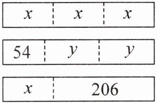 2. (浙江温州)下图为三个大小、形状完全相同的长方形,根据图中的数量关系,下面方程错误的是(D)。