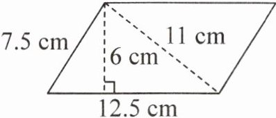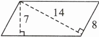 解析: 可以先根据已知的底为8 m,高为14 m,求出它的面积为8×14=112(m²)。又因为面积还可以用另一条底乘以对应的高来表示,已知这条高为7 m,所以另一条边的长度为112÷7=16(m)。再计算其周长。