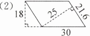 (2)30×18=540(cm²)[或21.6×25=540(cm²)]
