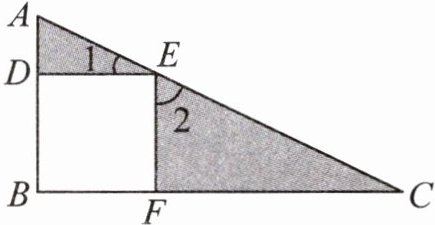 (1)由题意可知,DE= EF,可以将三角形ADE移到空白正方形里,使它与大阴影三角形贴合(即 DE 边与 EF 边重合)。这样,两个阴影部分就拼到一起了。