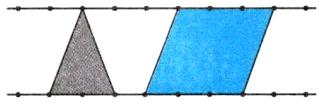 3. 如图,平行线之间有一个等腰三角形,请你画出一个平行四边形,使它的面积是这个等腰三角形面积的3倍。(直线上相邻各点间的距离相等)