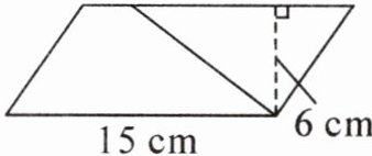 7. 如图,一个平行四边形的底是15 cm,高是6 cm。一条线段将该平行四边形分成了梯形和三角形两部分,它们的面积相差18 $cm^2$。求梯形的上底是多少厘米。