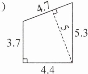 (2)(3.7+5.3)×4.4÷2=19.8(m²)