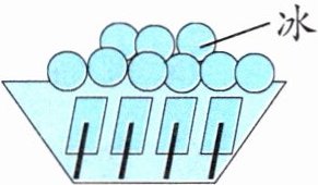 大木桶里放上冰,撒上盐后,冰的熔点会降低。冰在熔化过程中不断向周围
