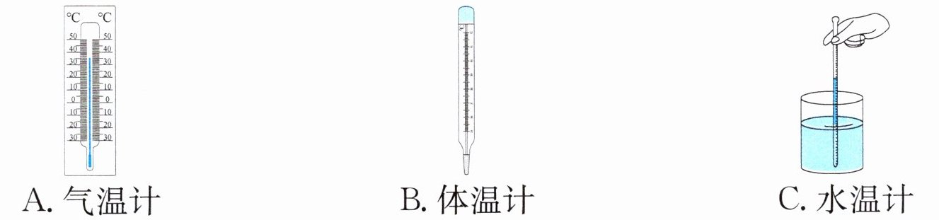 A 解析:测量气温的温度计叫气温计,又叫寒暑表;测量体温的叫体温计;测量水温的叫水温计。它们的结构功能是有区别的,不同温度计之间不能混用,但普遍都是利用物体热胀冷缩的原理制成的。