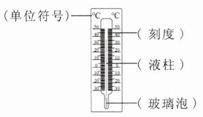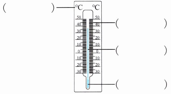 1. 把气温计各部分的名称填写在对应的括号内。