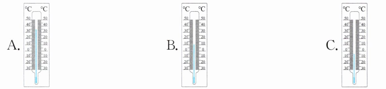5. 下列温度计显示的是不同季节早上9点的气温,显示夏天气温的可能是(