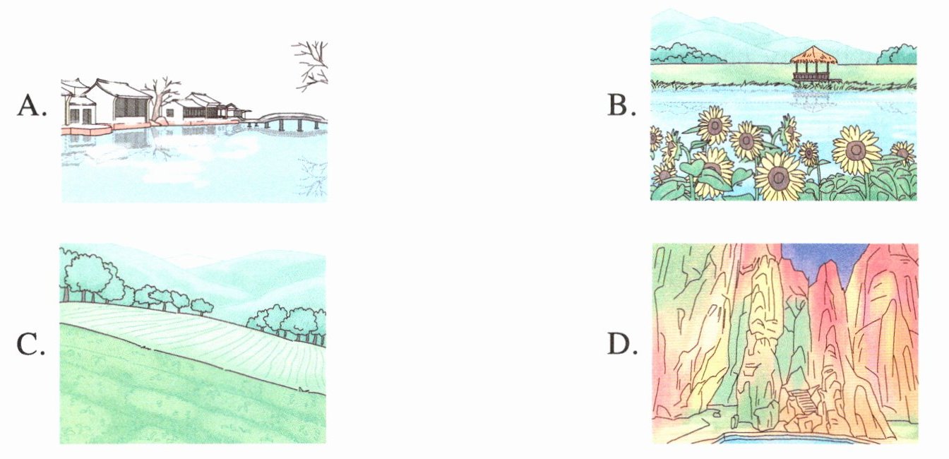 一、根据网页内容,给杭州的四季配图,将正确选项填在横线上,完成第1~4小题。