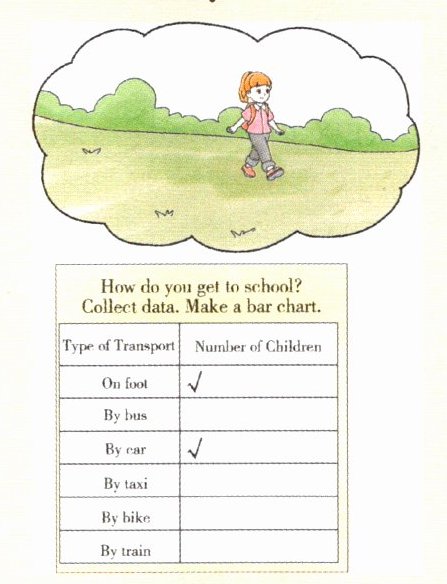 7 Eric and Betty find out that lots of children come to school by car or on foot.
