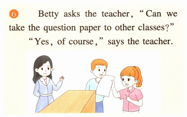 6 Betty asks the teacher, "Can we take the question paper to other classes?"