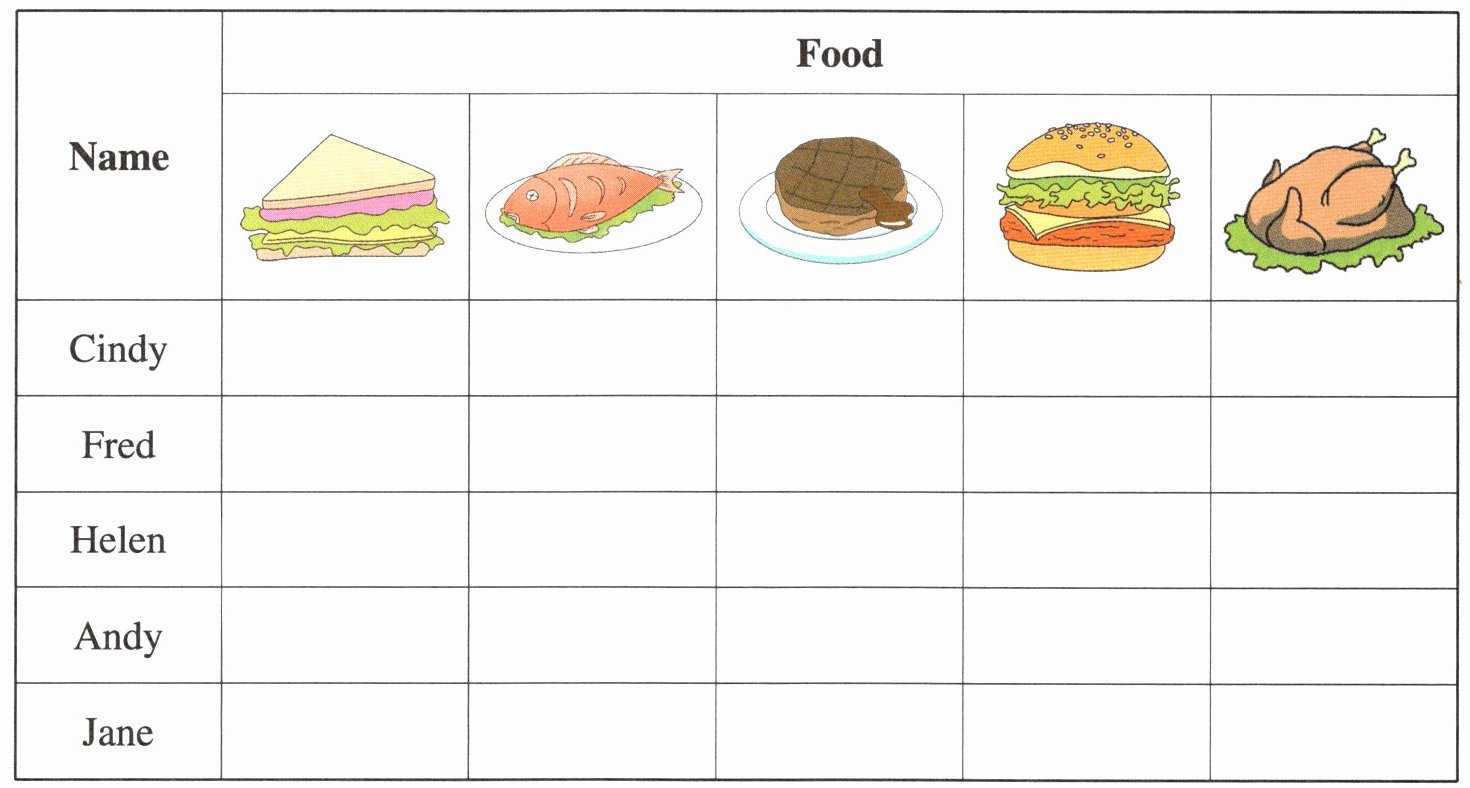 On Mondays, we have fish and tomatoes. Fish is my favourite food. I think it's healthy. We have hamburgers on Tuesdays. Fred likes Tuesdays because he likes hamburgers very much. What do we have on Wednesdays? We have carrots and chicken. Chicken is Helen's favourite food. She thinks it's delicious. Do we have chicken on Thursdays? No! We have beef and potatoes. Andy likes Thursdays because his favourite food is beef. What about Fridays? We have sandwiches and onions. Jane likes Fridays because she can have sandwiches.