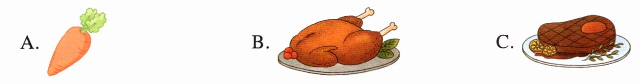 Cindy 的学校食堂给学生们提供了丰富的食物。让我们一起去看一看菜单上都有什么吧!