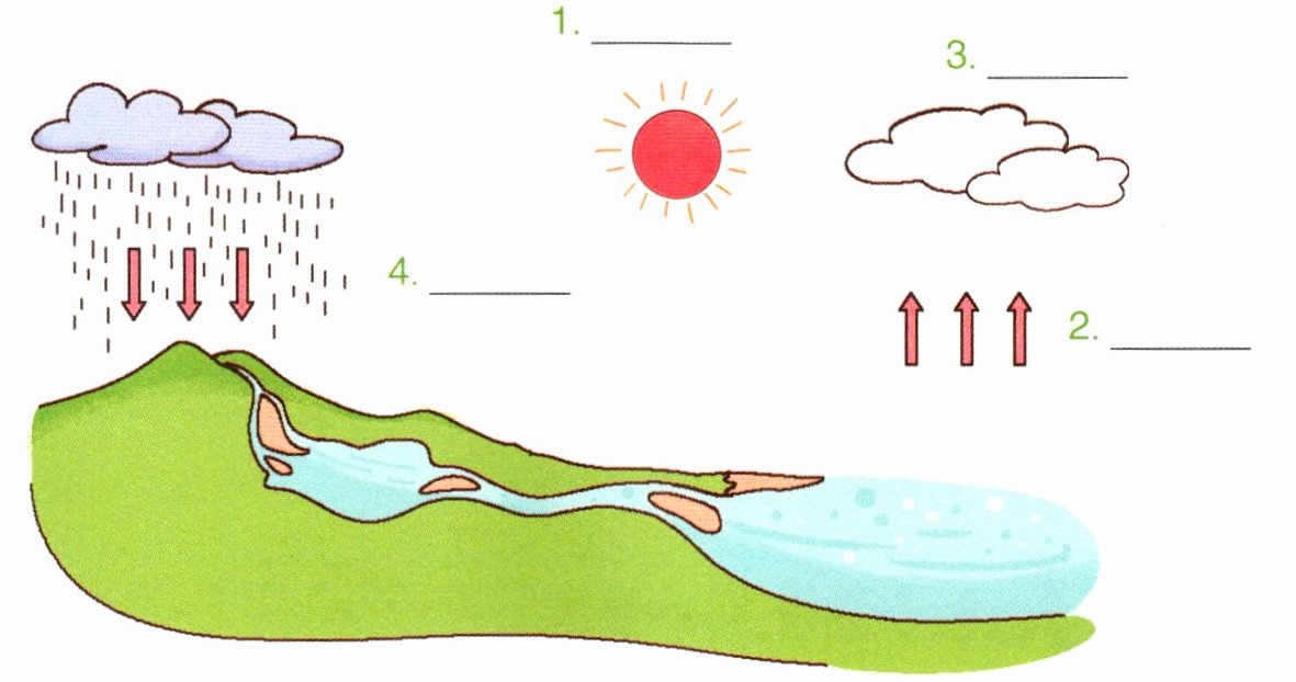 The water cycle is like a big circle. It happens over and over again. There is a picture of how it works.