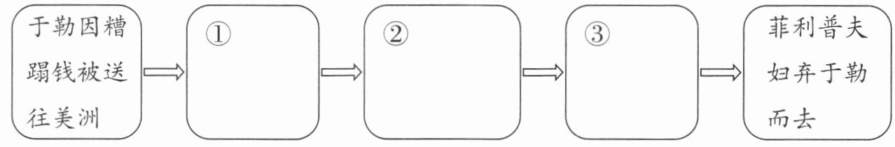 于勒因糟蹋钱被送往美洲 → ① → ② → ③ → 菲利普夫妇弃于勒而去