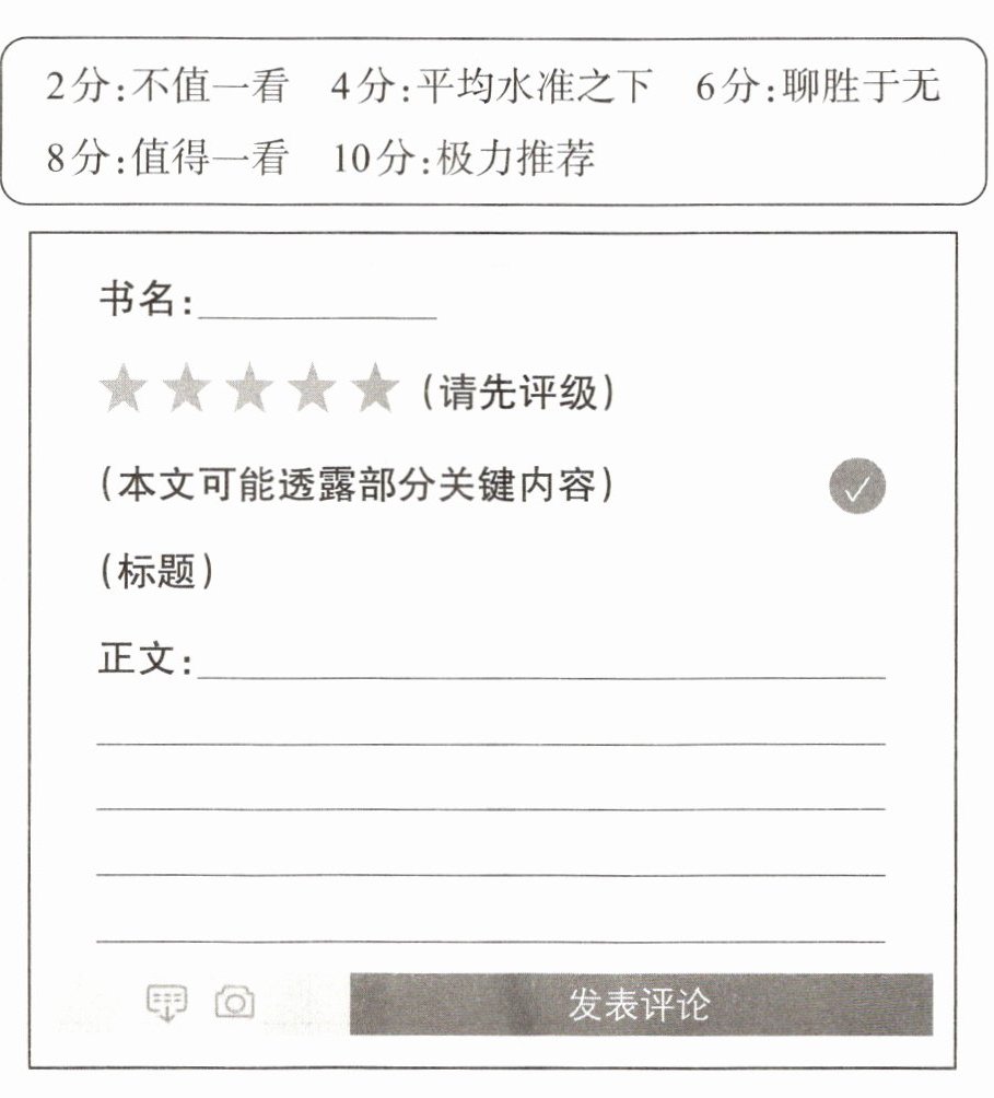 (2)假设你是读者,请你结合编辑提供的信息及你的阅读体验,在该书评价栏
