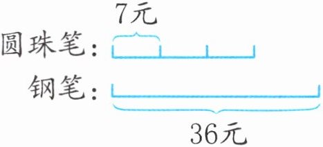 解析:根据图中的信息,圆珠笔的单价是7元,钢笔的单价是36元。乐乐列出的算式是$36 + 7 × 3$,其中36表示1支钢笔的价格,$7 × 3$表示3支圆珠笔的价格。因此,乐乐解答的问题是买1支钢笔和3支圆珠笔一共要多少钱。