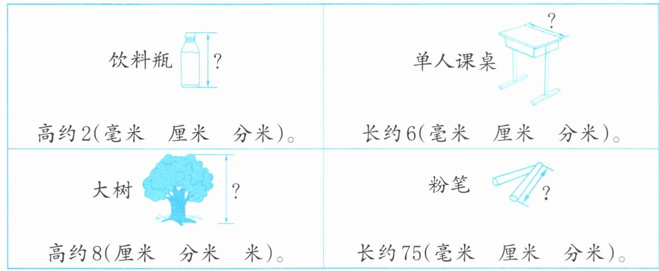 1. 选择合适的单位,并圈一圈。
