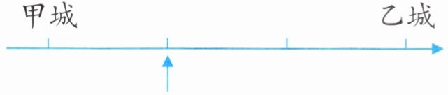 解析:本题考查路程、速度、时间的关系以及在数轴上定位位置的能力。根据公式:路程 = 速度×时间,张叔叔每小时行驶千米,约小时后到达服务区,那么行驶的路程约为(千米)(这里进行估算)。在图中从甲城开始,大约$\frac12$处标出服务区的大致位置