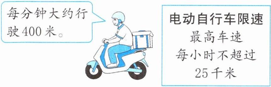 4. 小王骑电动自行车送外卖,手机显示本订单离预定送达时间还有5分钟,路程有3千米。小王能不超速且按时把外卖送到吗?