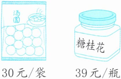 已知每袋汤圆的价格是$30$元,李阿姨要买$4$袋,糖桂花的价格是$39$元。