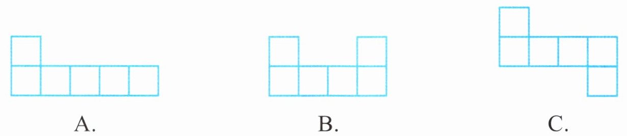 选项A中,该图形有5个小正方形排成一排,另外1个在侧面,通过折叠可以发现,无法构成正方体,因为它存在重叠或空缺的情况,不能完整地围成正方体的六个面。