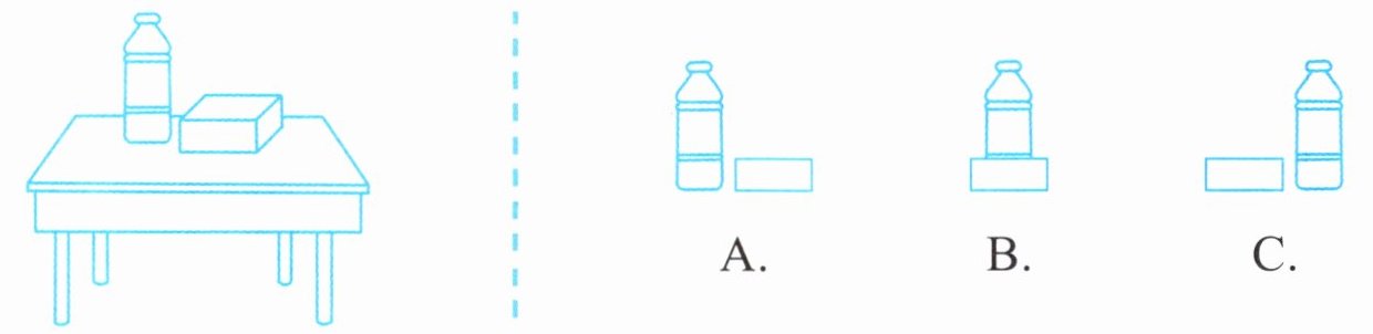 从对面观察,即从后面观察,看到的图形瓶身在左,瓶盖在右,长方体在瓶的右边。