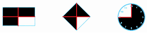 3. 先分一分,再涂色表示下面各图的$\frac{3}{4}$。