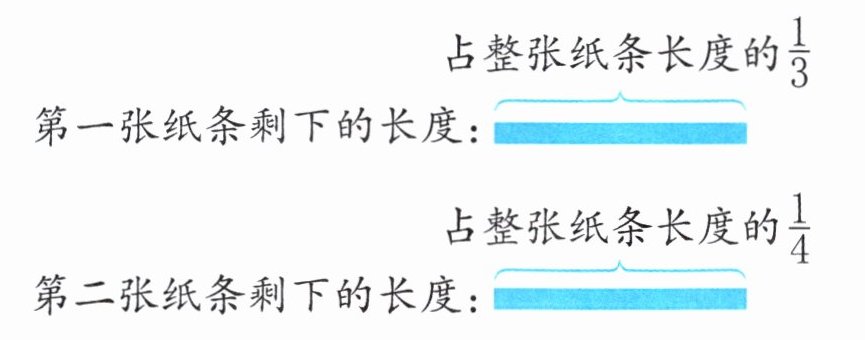 4. 小林用两张纸条制作美术作品。两张纸条各用去一部分后,剩下的部分同样长(如下图)。原来哪张纸条更长?请写出理由。