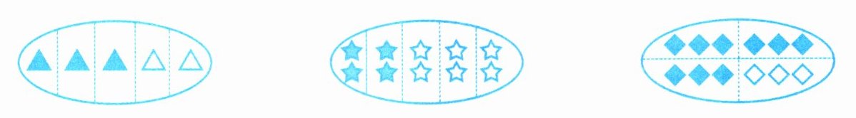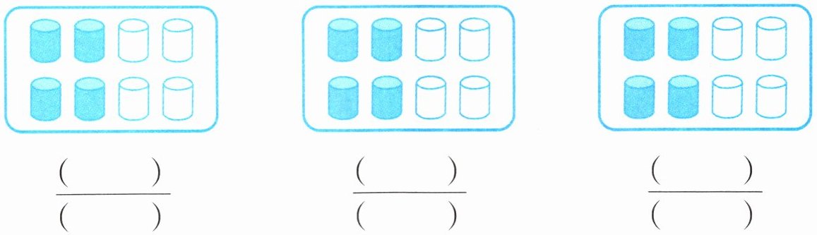 4. 用不同的分数表示下面各图中的涂色部分,先分一分,再写一写。