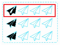 (1) 先圈出下面纸飞机的$\frac{1}{3}$,再把纸飞机的$\frac{1}{4}$涂色。